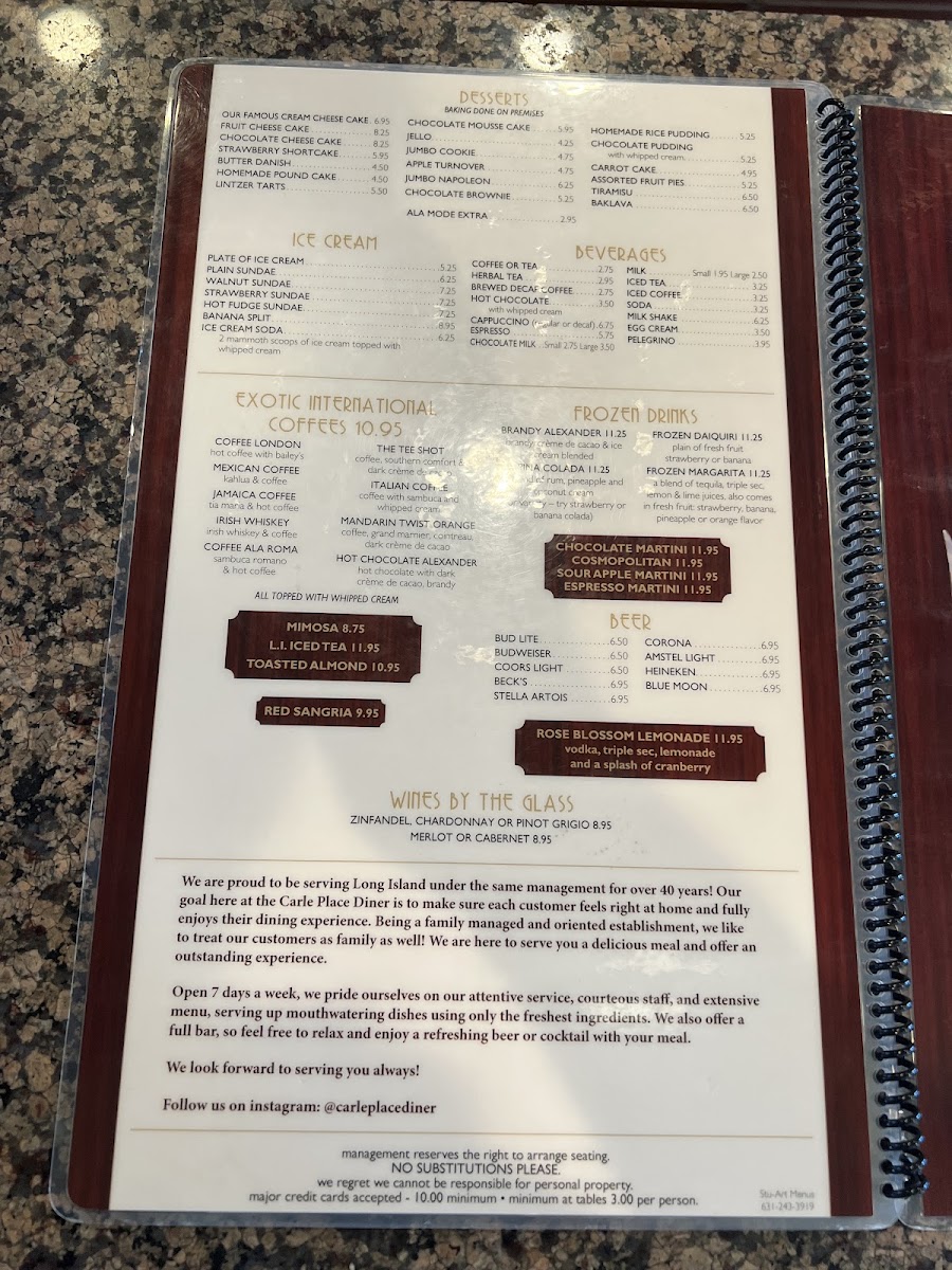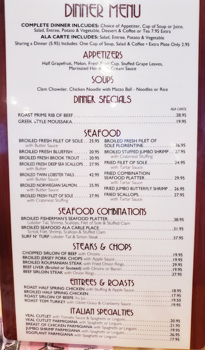 Carle Place Diner Menu