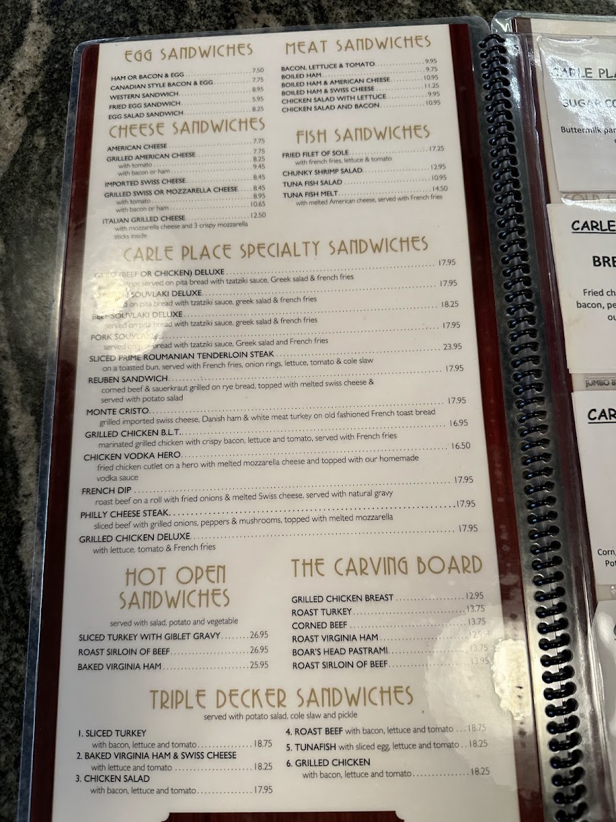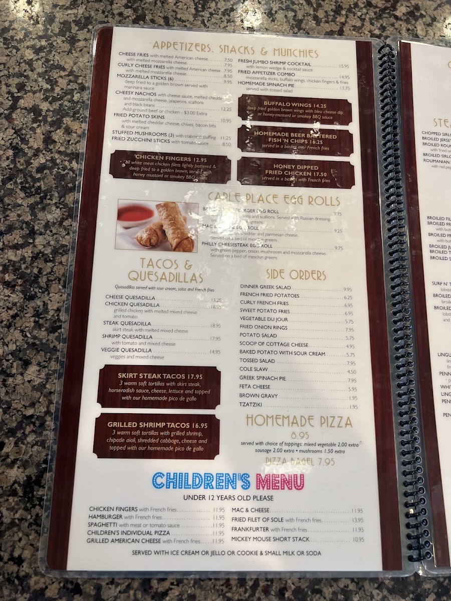 The menu at Carle Place Diner offers a classic and straightforward café-style experience, focusing on hearty, familiar dishes that feel right at home any time of day. Whether you’re stopping in for a relaxed breakfast or a casual lunch, you’ll find a range of comforting options that pair well with the warm, welcoming atmosphere.